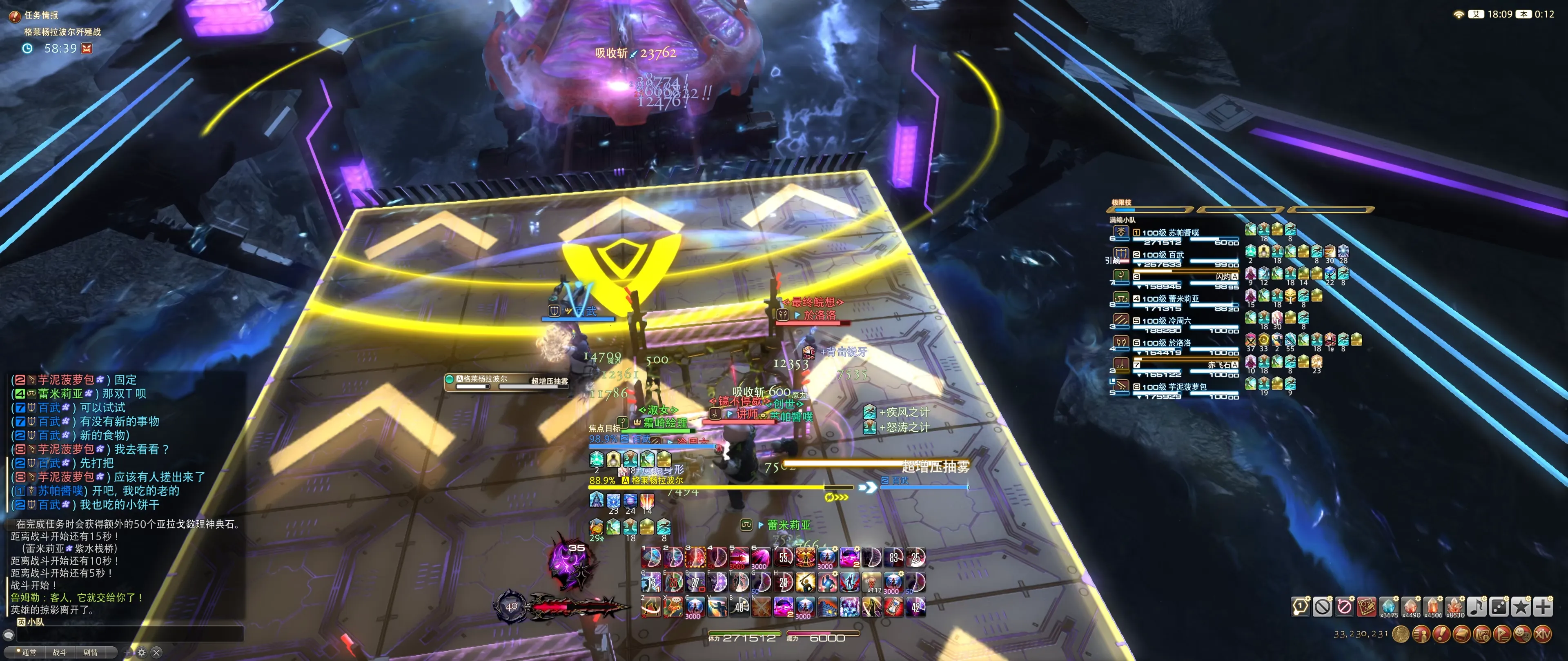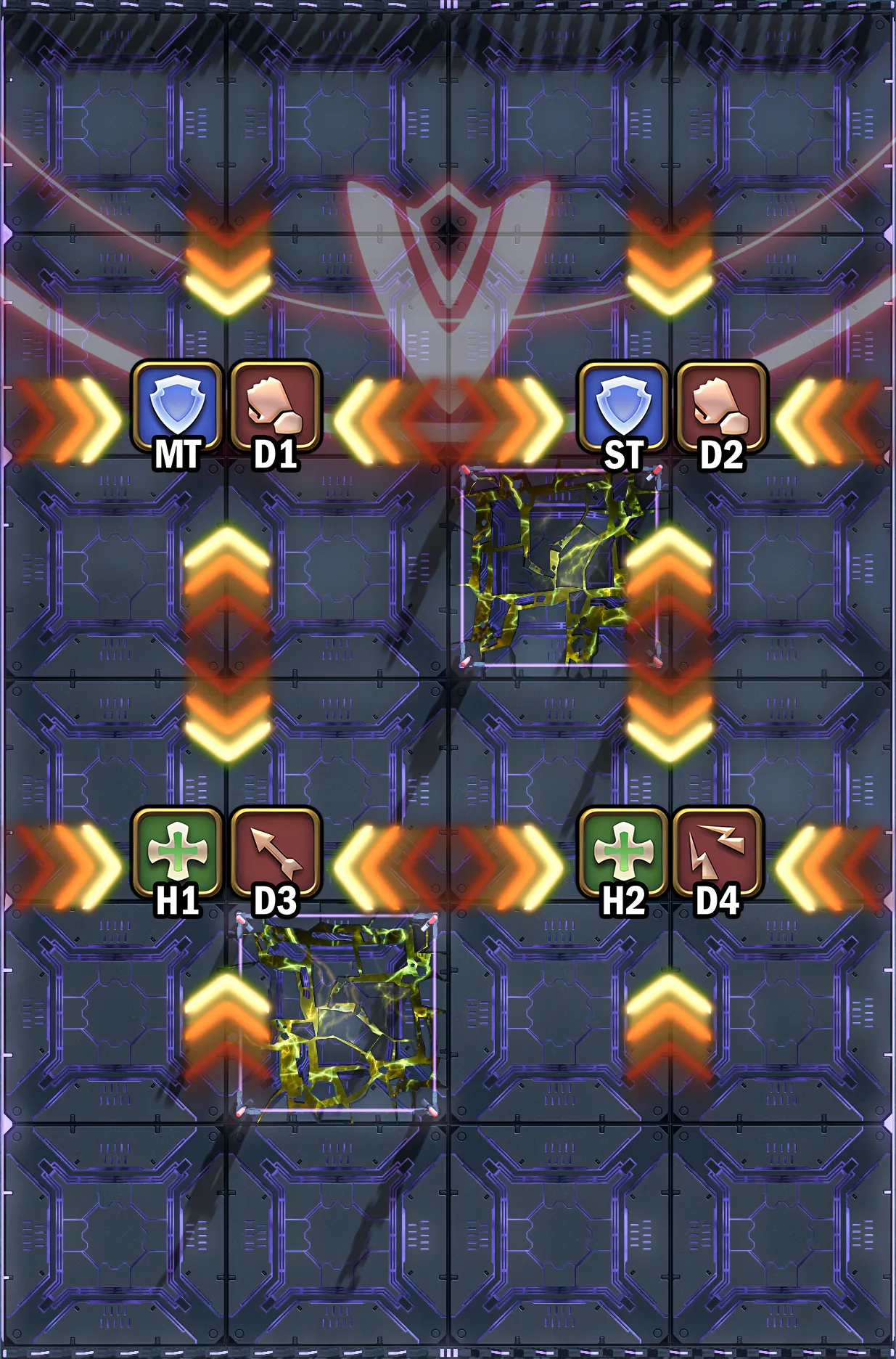 直线吸引(防击退有效,也可被围栏区域挡住)后接地面AoE,前两行方格地板会被攻击,注意之后会紧跟判定超增压