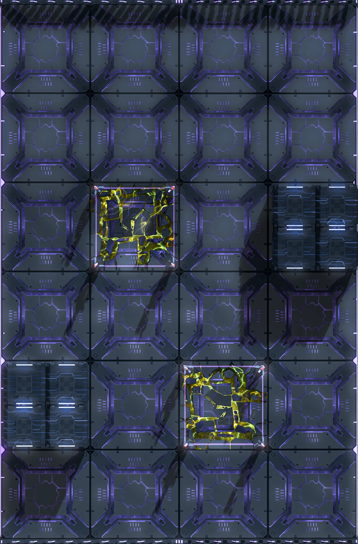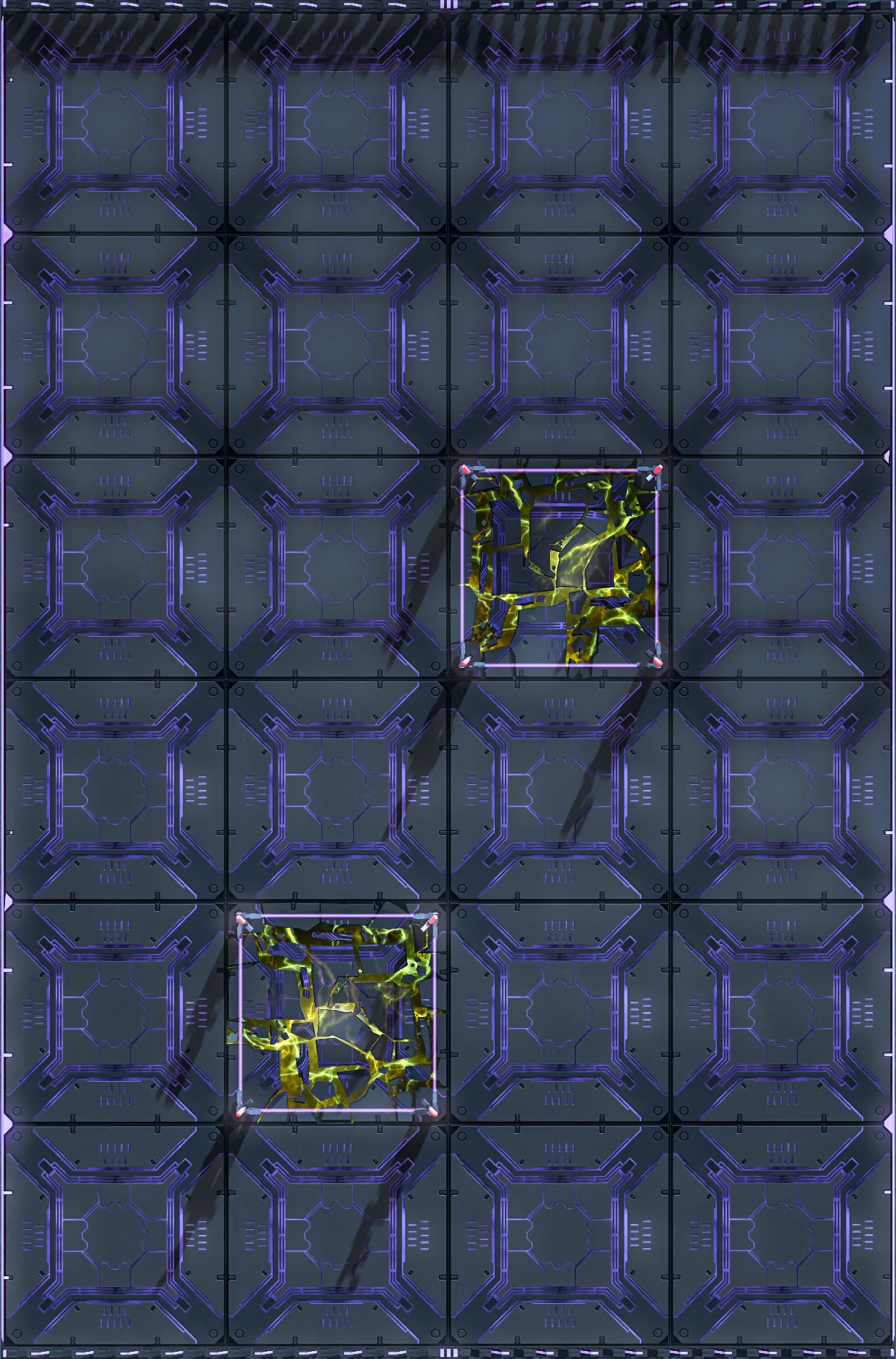 初始场地如下图,有两块方格是被围栏挡住的区域,无法站入其中