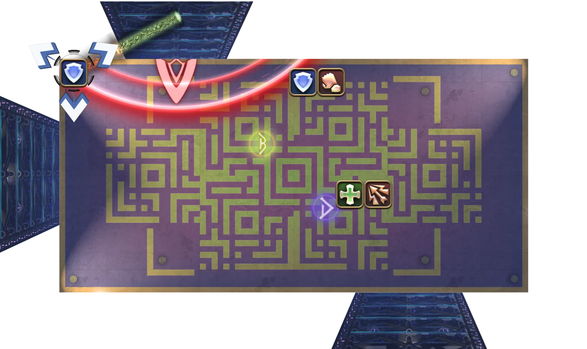 随后移动至连线墙壁,读条结束后发动对应钢铁/月环