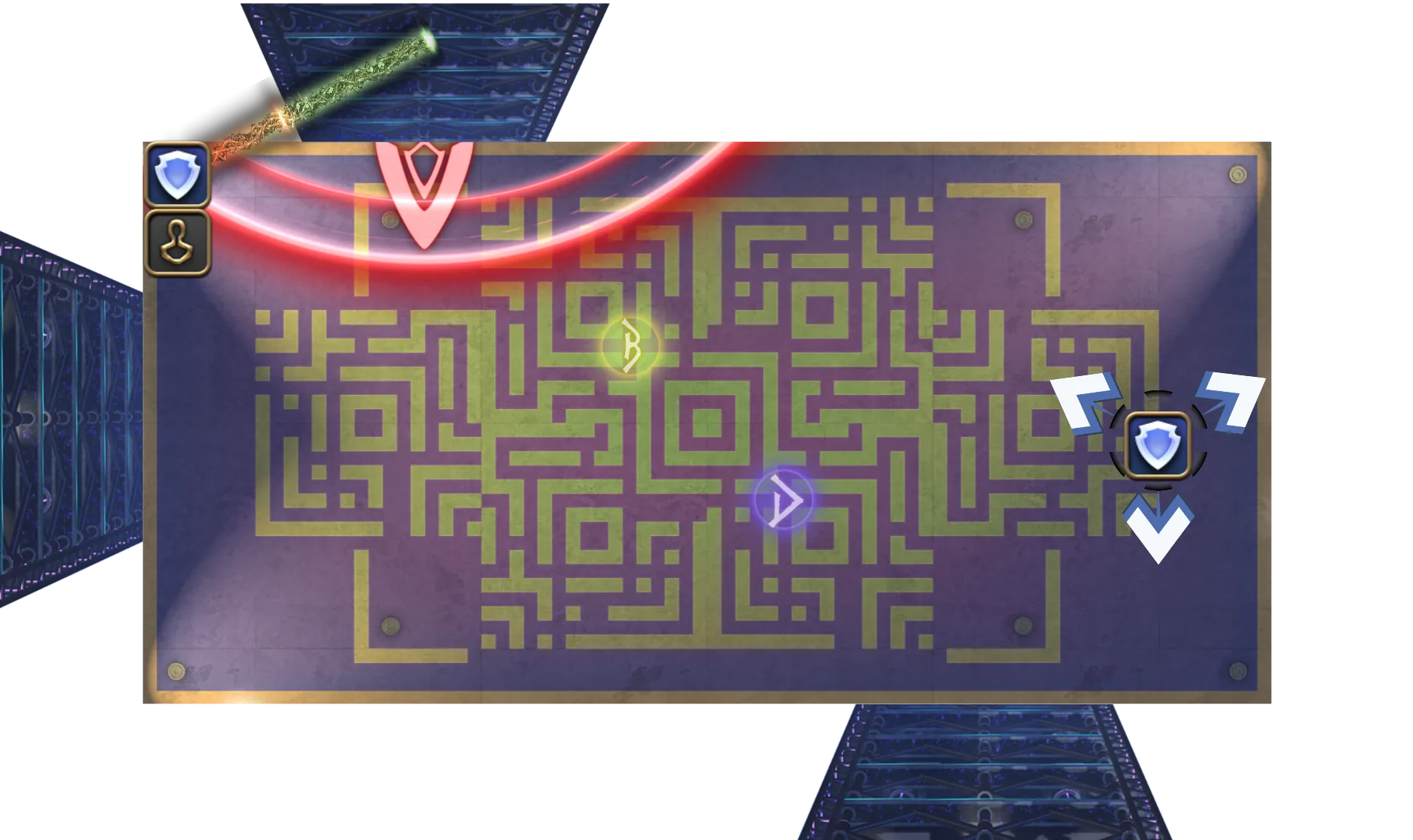 再观察 连线的墙壁,在读条结束前前往对应安全区躲避钢铁月环